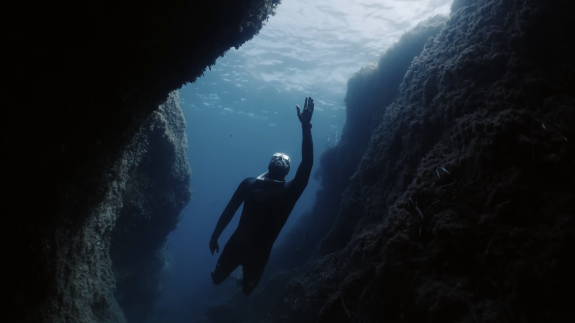 “following Natoo in her experience of freediving into the depths of the ocean”